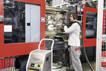 干冰清洗機IB7/40的在線清洗,無需拆機,干冰清洗過程是完全干燥的、且不導電,它可免去傳統意義上繁瑣的拆機和調試工作,直接深入縫隙和凹槽、對付清潔死角;柔性清洗,無磨損,干冰清洗不會對物體表面產生任何磨損、且不影響設備精度,甚至可適用于敏感脆弱表面的高效除垢;低成本,高性價比,干冰清洗的原料消耗成本低、設備停機時間短、污水處理及試模次數少,綜合成本和效率完勝傳統方式。