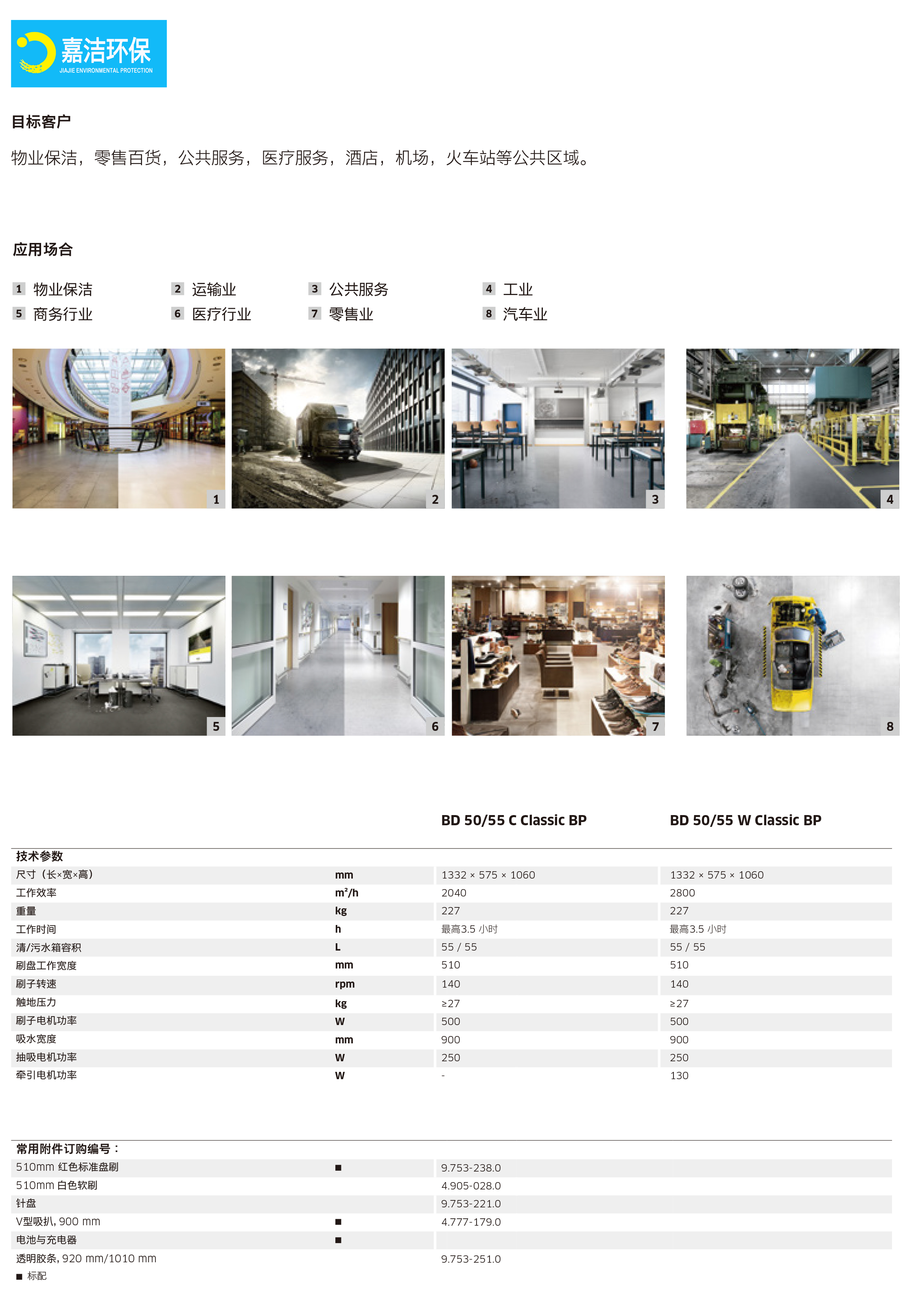 卡赫手推式洗地吸干機BD 50/55 W Classic適用范圍廣泛,可用于商場超市,生鮮菜場,物業保潔,醫療、辦公樓宇,工廠及展館等公共場所的清潔,還可以通過選用不同材質的附件,滿足多種清潔作業區域,如:水泥、花崗巖、大理石、陶瓷、石板等硬質地面和弱性地板。