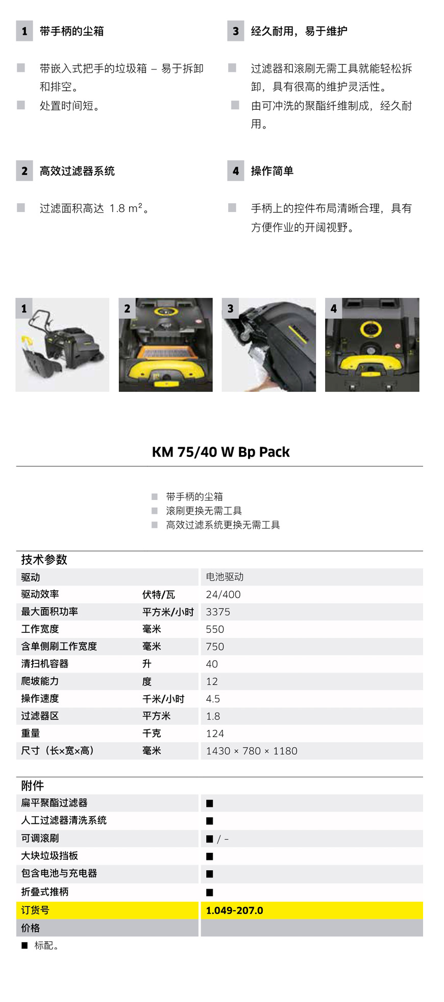 KM 75/40 W Bp Pack電池驅動型手推式掃地車