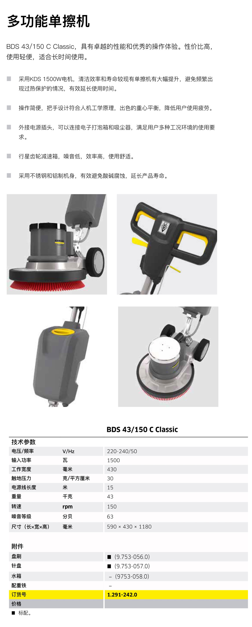 嘉潔環保設備提供德國卡赫KARCHER 多功能單擦機BDS 43-150 C Classic,該款設備具有卓越的性能和舒適的操作體驗。性價比高,使用輕便,適合長時間使用。嘉潔環保提供專業售后,價格實惠,歡迎咨詢。